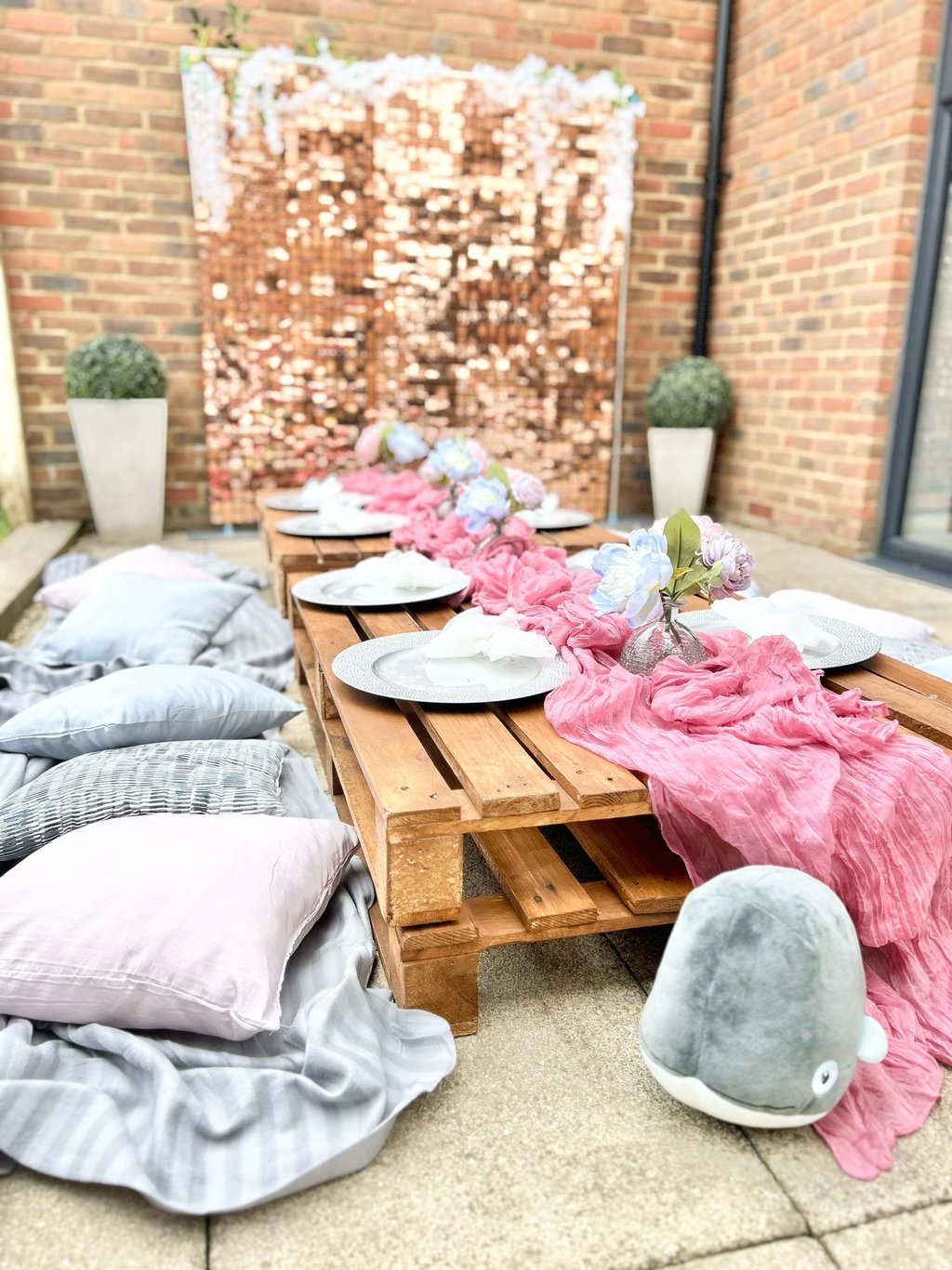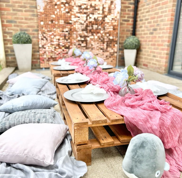 Planning a party? We have a variety of pallet furniture, lawn games, backdrops, and food walls for the perfect garden party.